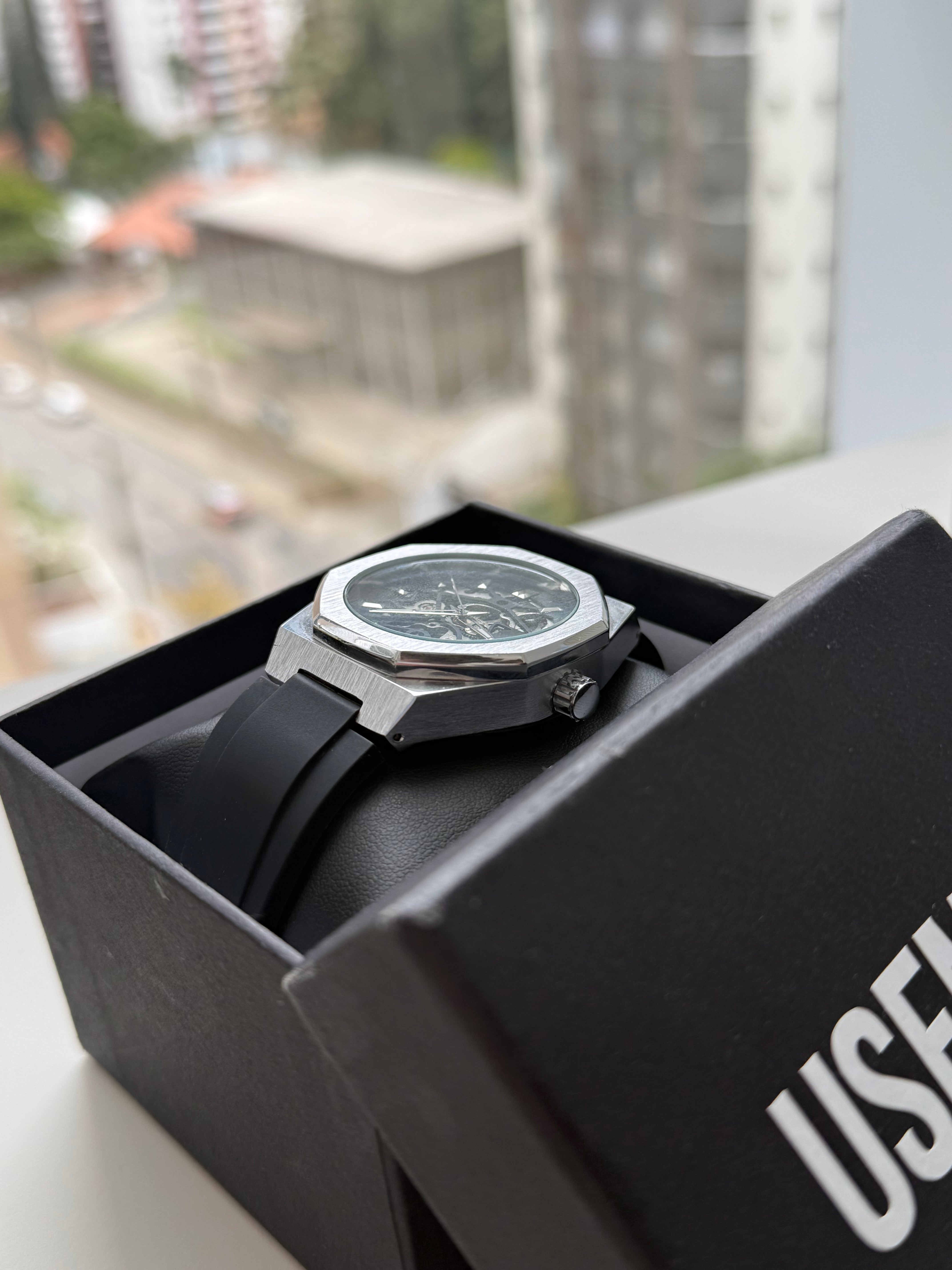 Elegância dinâmica em cada detalhe, esta coleção limitada da Useman apresenta um esplêndido mostrador skeleton.