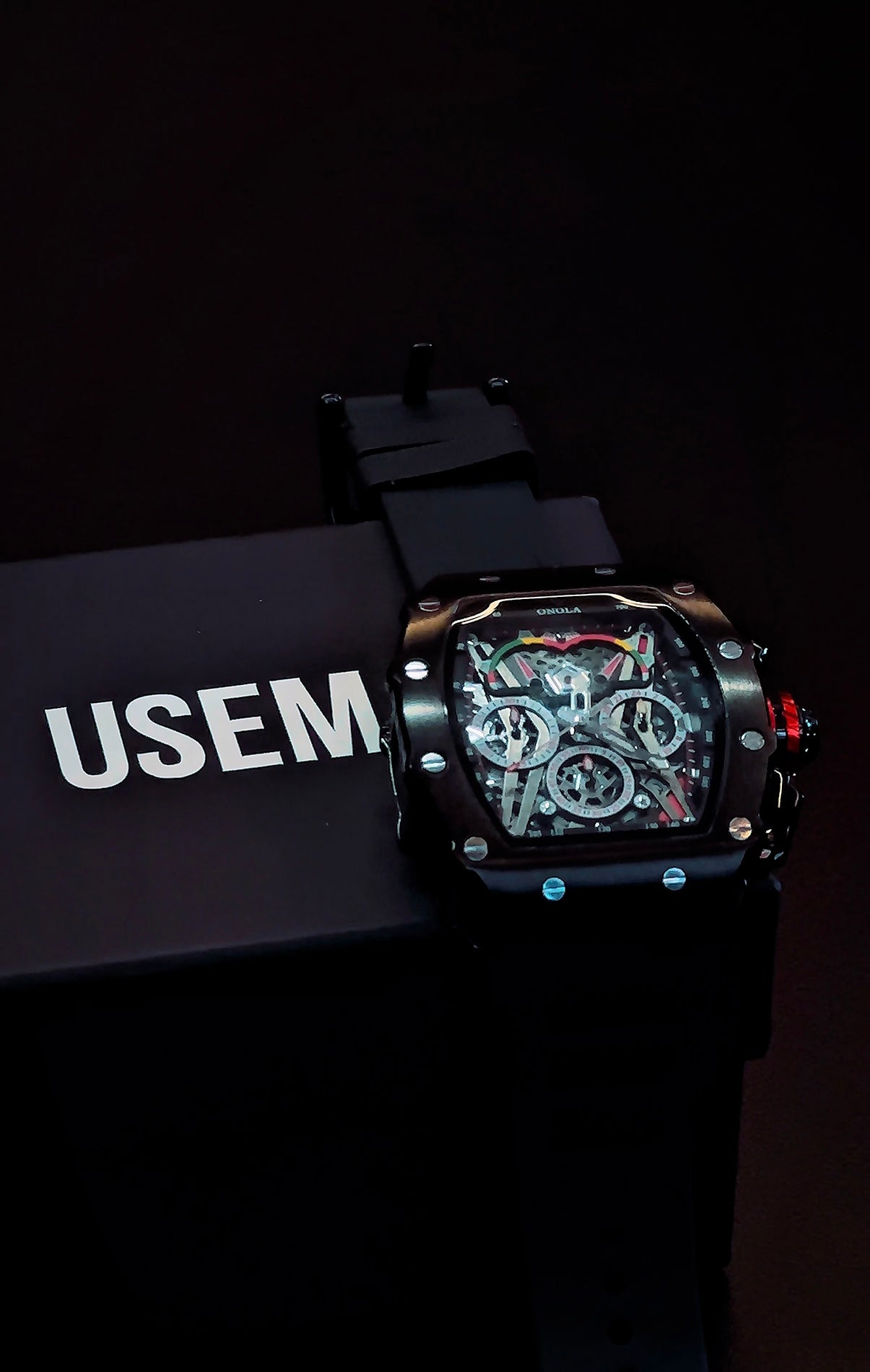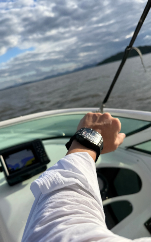 Linhas fortes, textura leve e sensação sólida no pulso. Visual esportivo sem perder sofisticação.